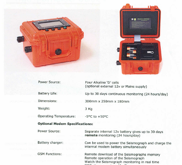 The all new V9000 Seismograph is designed and manufactured by Vibrock Ltd to meet the needs of our customers.  The V9000 Seismograph is a battery powered portable vibration monitor, designed for monitoring blasting, piling, demolition, construction and traffic vibrations.  It can also monitor dominant frequencies as well as air overpressure from blasting, using the optional microphone.